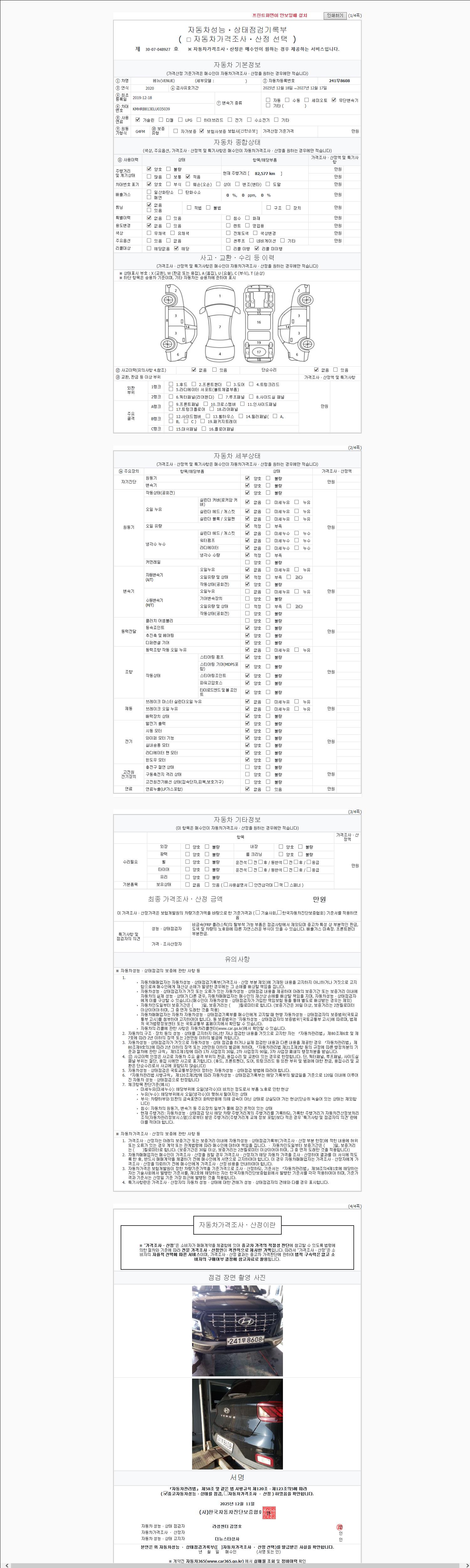 | 주행거리 | 82,577 km | 차량번호 | 241무8608 |