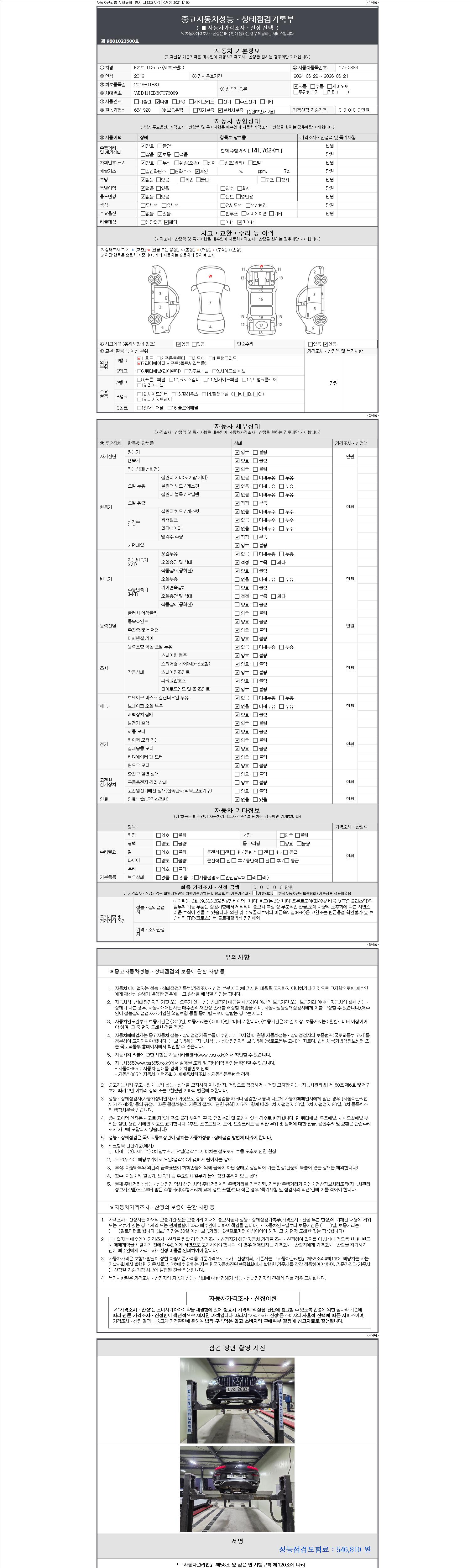 사고유무 성능기록부 참조 제시번호 제 2147483647 호