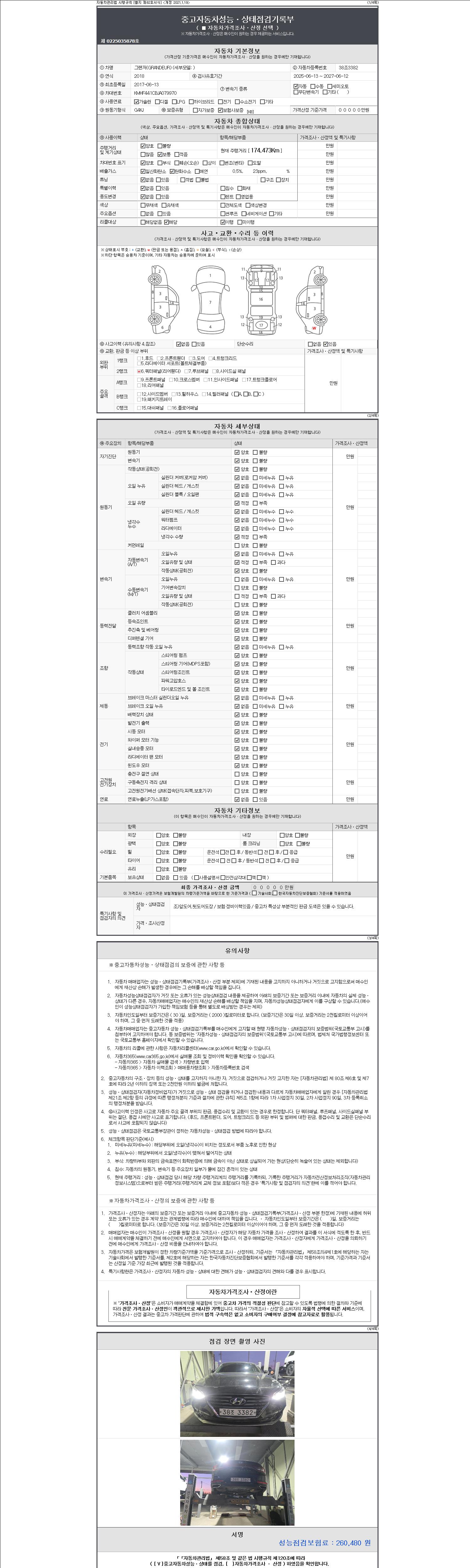 2. 차량 등록증이나 성능점검지 등을 상담자에게 요청및 확인하시고 사전에 미리 점검 하시기를 권유드립니다.