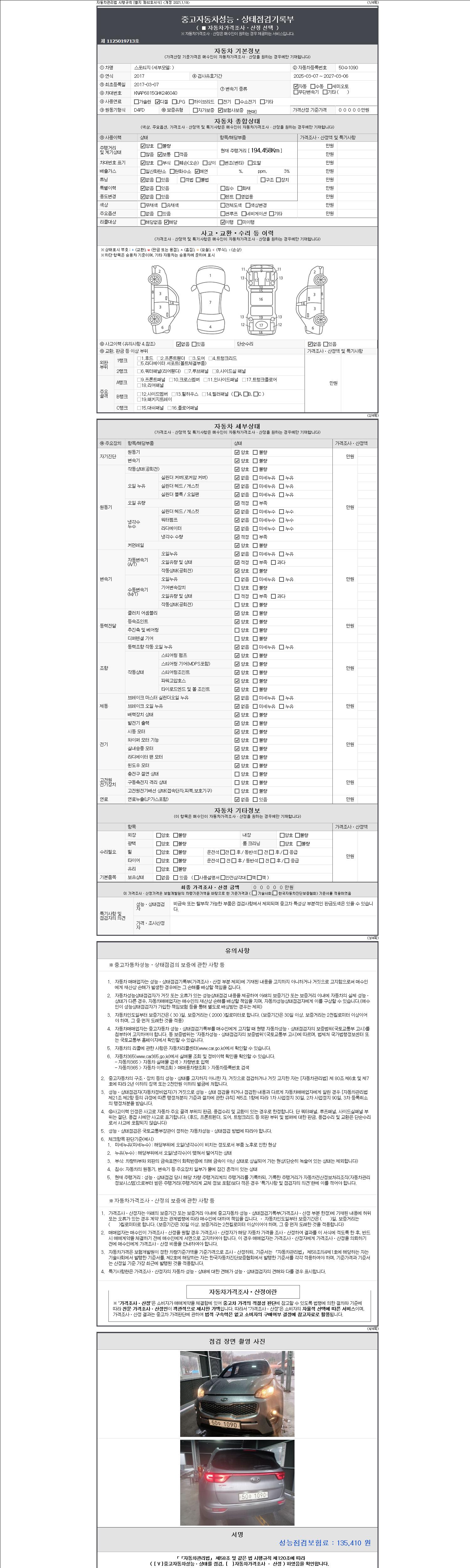 -중고자동차 매매업자를 통해 차량을 구입하실 경우 반드시 "중고자동차 성능, 상태점검 기록부"를 교뷰 받으셔야 하며, 매매업자는 반드시 의무 교부 하여야 압니다.