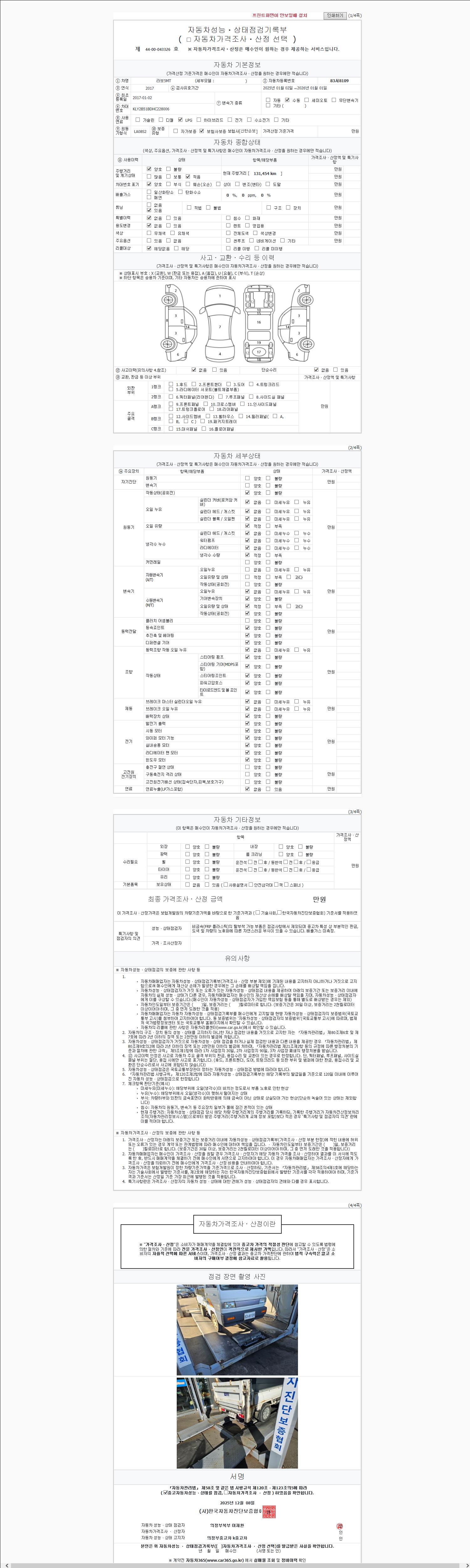 사고유무 성능기록부 참조 제시번호 제 2025225532 호