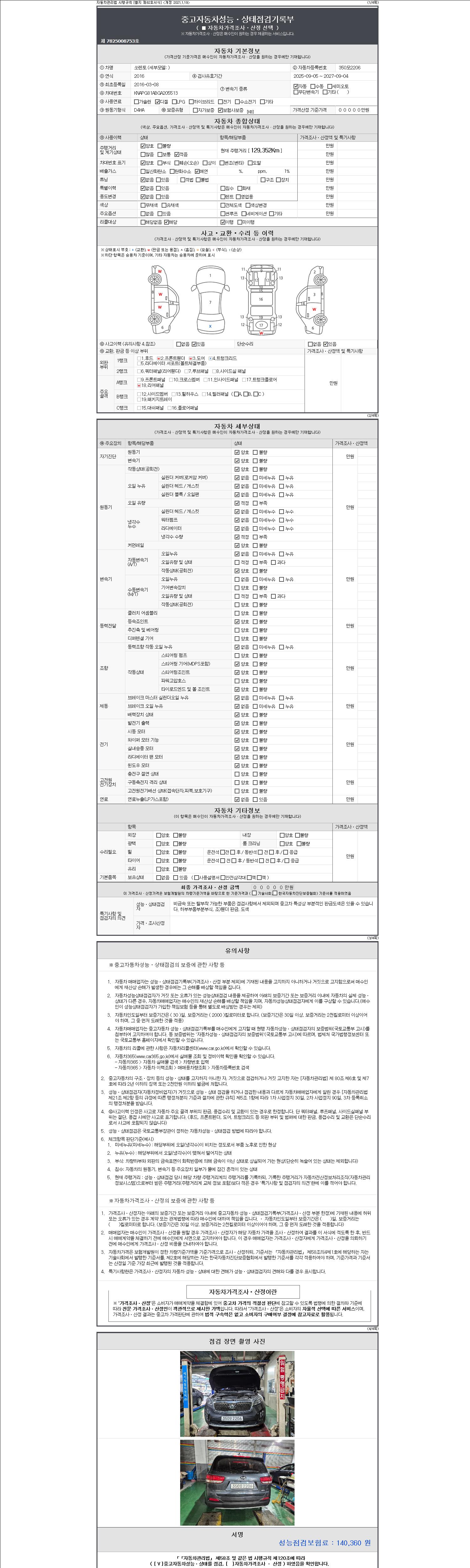 2. 차량 등록증이나 성능점검지 등을 상담자에게 요청및 확인하시고 사전에 미리 점검 하시기를 권유드립니다.