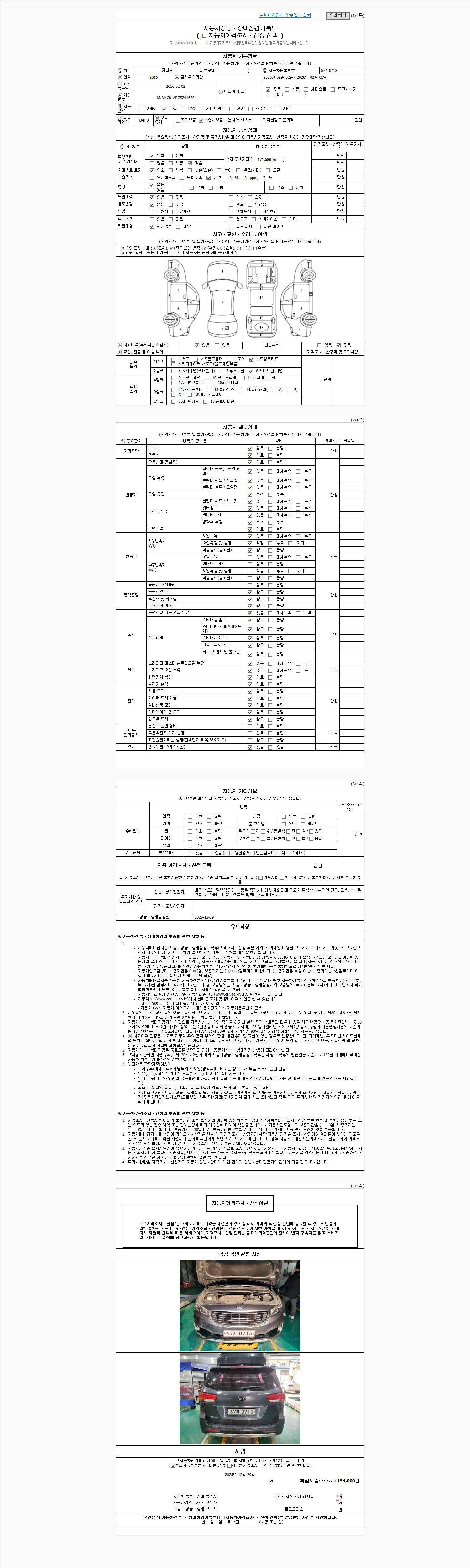 사고유무 성능기록부 참조 제시번호 제 2025071770 호