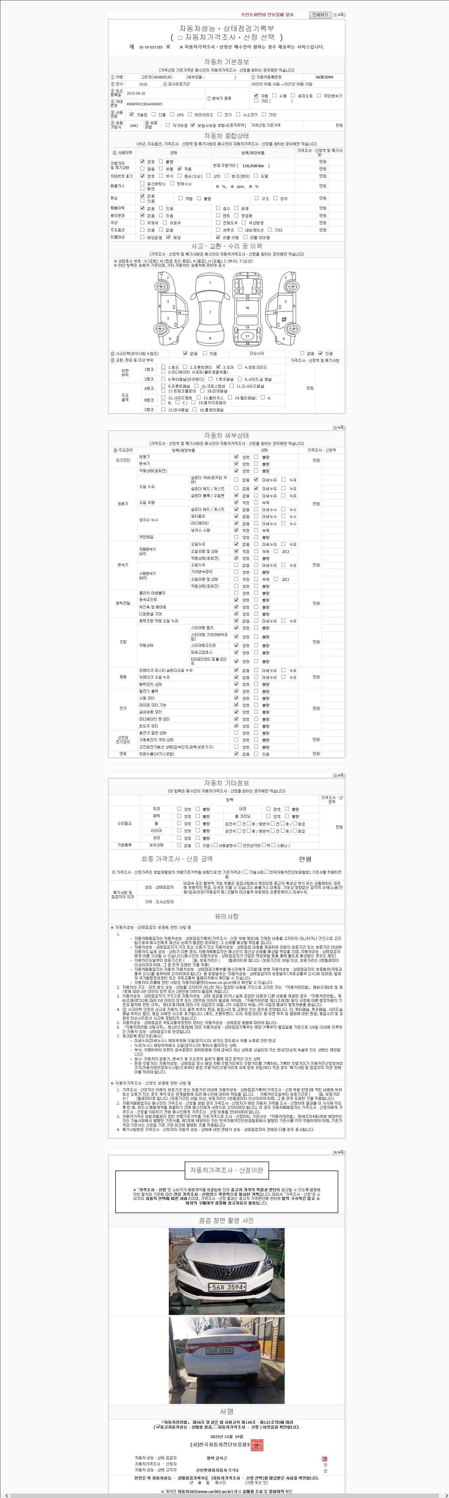| 주행거리 | 116,928 km | 차량번호 | 56저3594 |