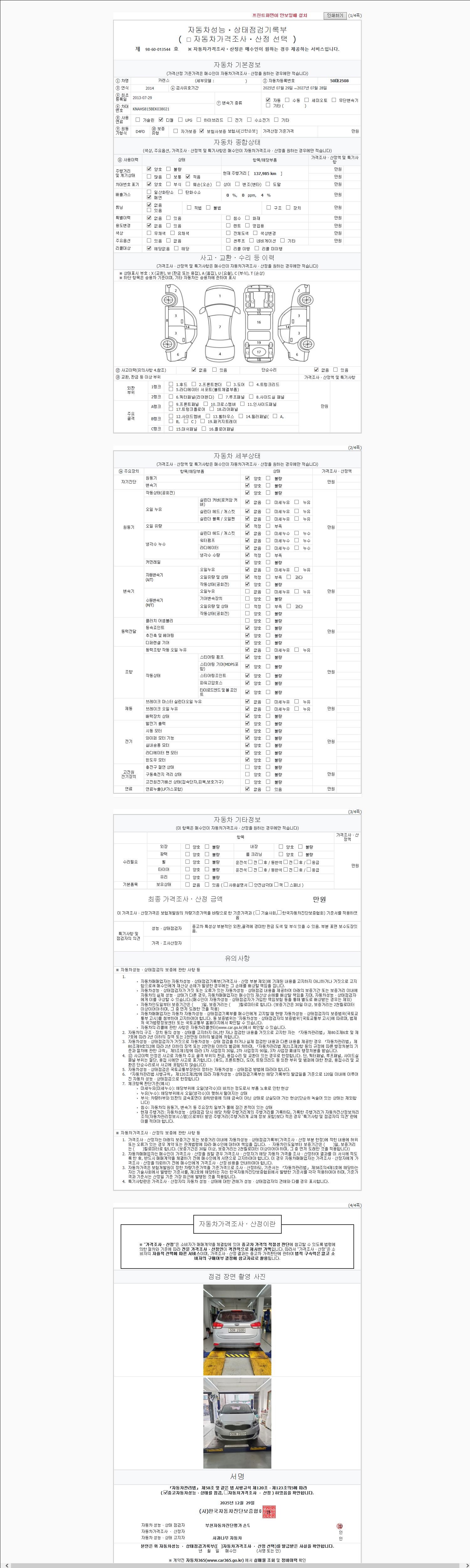 2. 차량 등록증이나 성능점검지 등을 상담자에게 요청및 확인하시고 사전에 미리 점검 하시기를 권유드립니다.