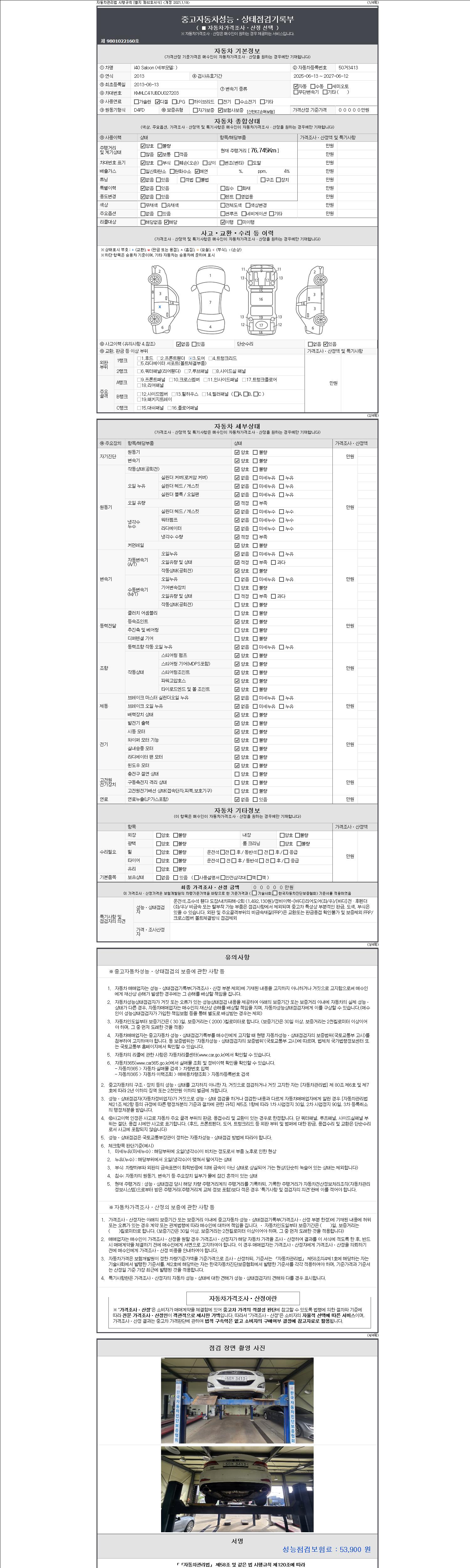 2. 차량 등록증이나 성능점검지 등을 상담자에게 요청및 확인하시고 사전에 미리 점검 하시기를 권유드립니다.