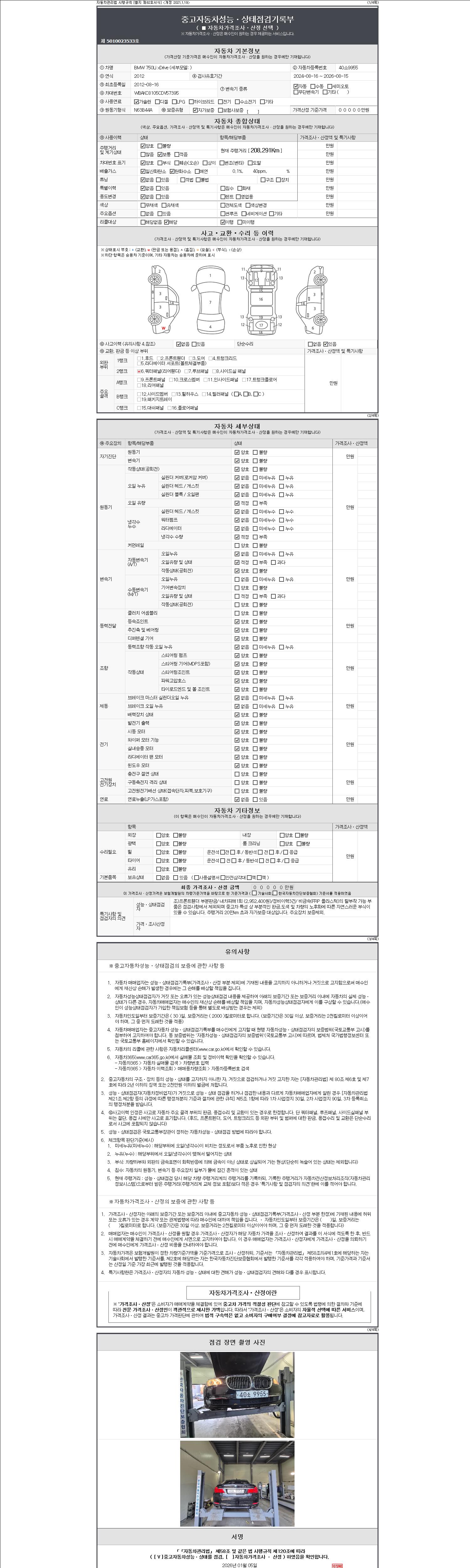 3. 차량의 이미지중 차량번호가 의도적으로 가공, 편집 된 경우나 지나치게 가격이 낮을 경우 더욱 세심한 주위를 요구합니다.