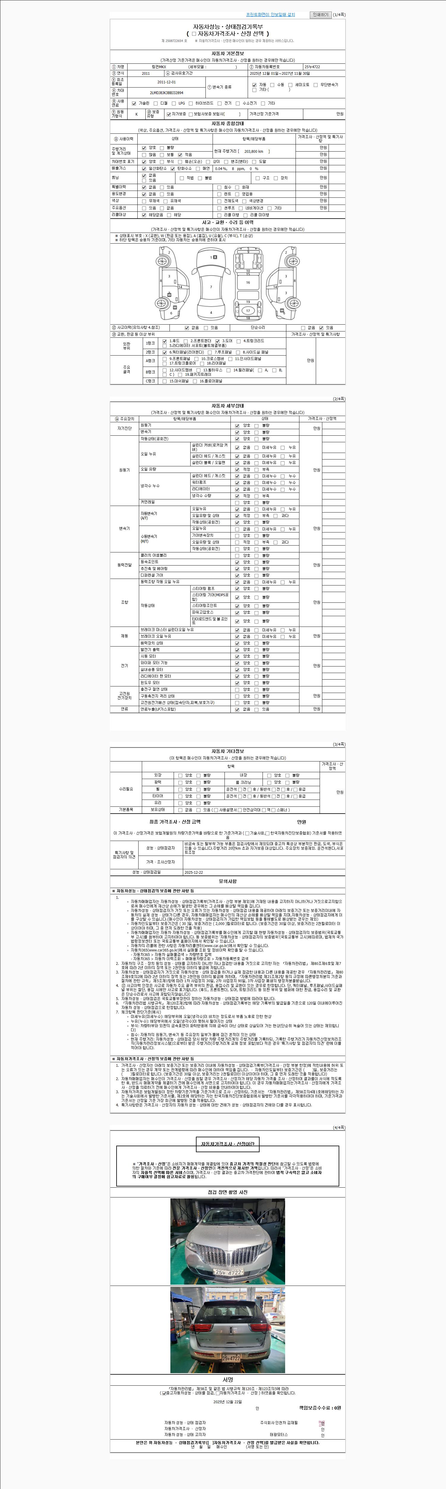 사고유무 성능기록부 참조 제시번호 제 2025069260 호