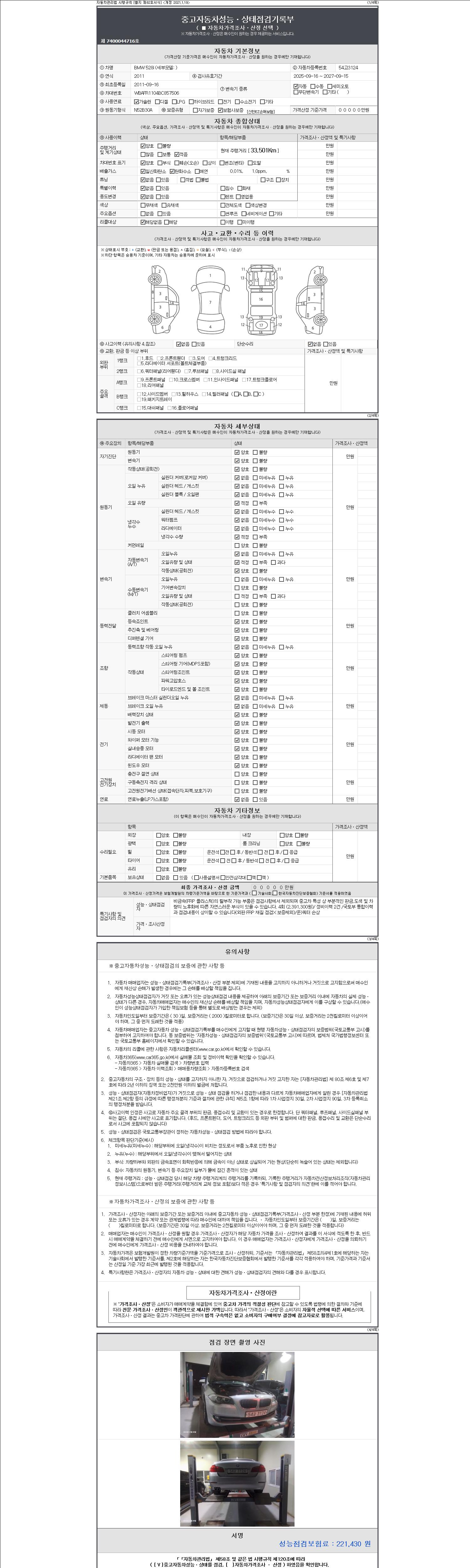 -중고자동차 매매업자를 통해 차량을 구입하실 경우 반드시 "중고자동차 성능, 상태점검 기록부"를 교뷰 받으셔야 하며, 매매업자는 반드시 의무 교부 하여야 압니다.