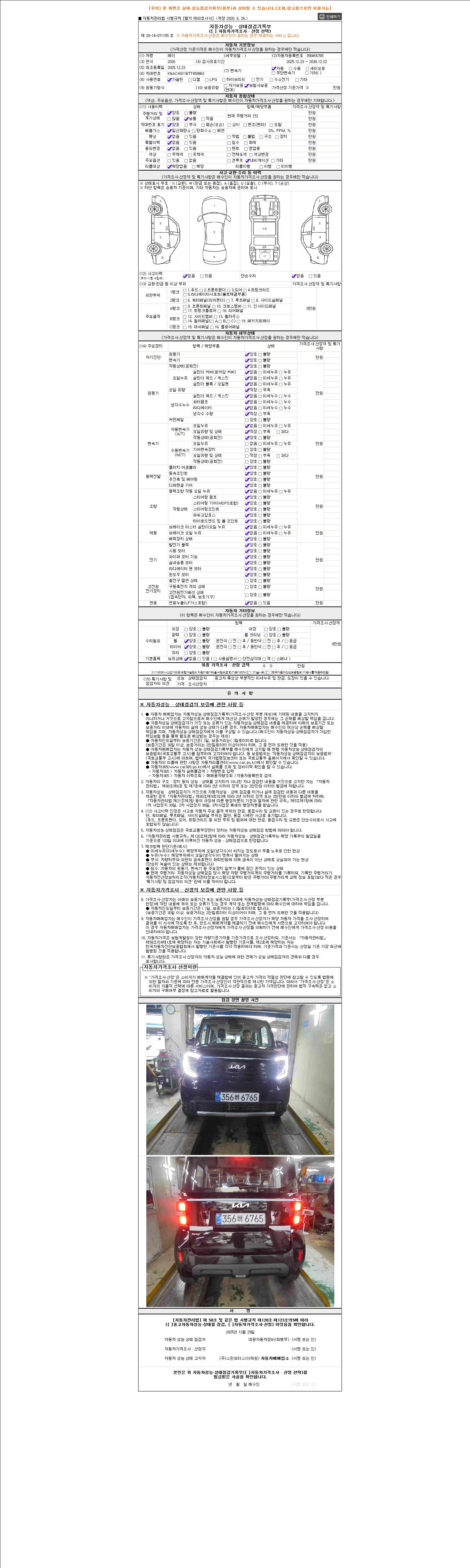 사고유무 성능기록부 참조 제시번호 제 2025175648 호