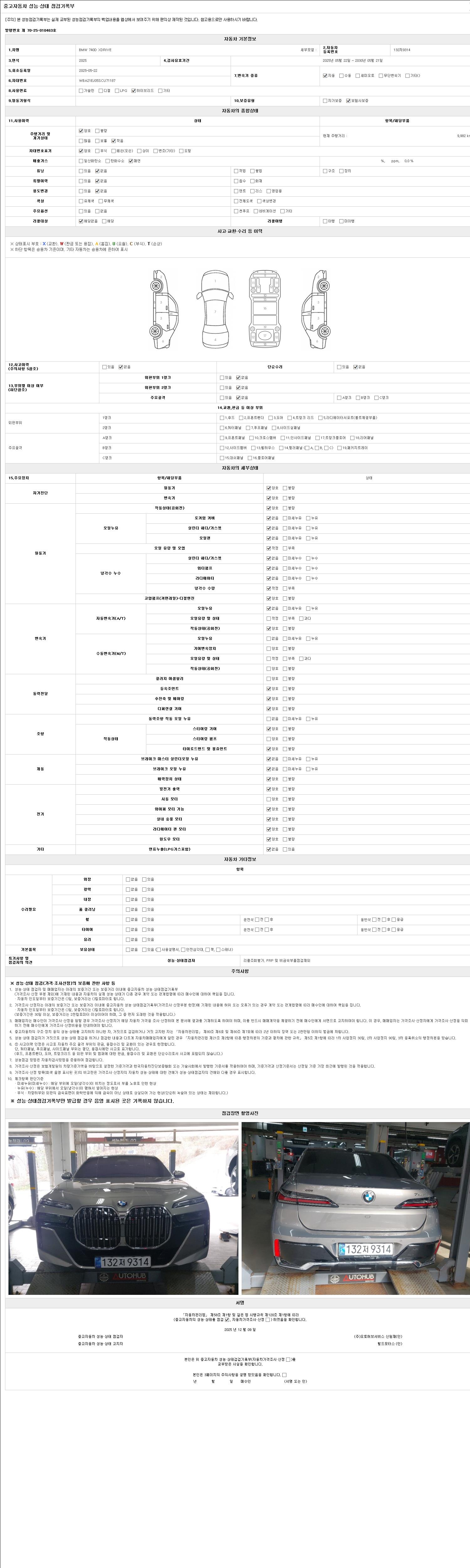 자동차관리법 시행규칙 제120조의 규정에 따라 별지 제 82호서식 《중고자동차 성능, 상태점검 기록부》를 발행한 성능, 상태점검자 및 매매자는 아래의 보증기간 또는 보증거리 이내의 중고자동차, 성능점검 기록부에 기재된 내용과 자동차의 실제 성능, 상태가 다른 경우 계약 또는 관계법령에 따라 매수인에 대하여 책임을 집니다.