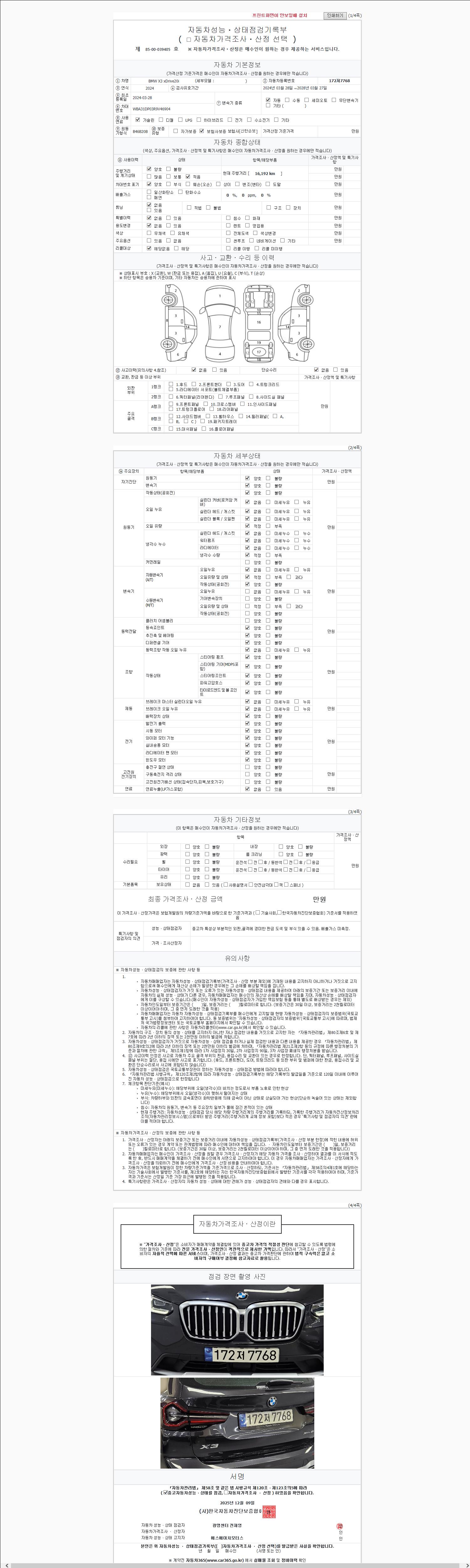 2. 차량 등록증이나 성능점검지 등을 상담자에게 요청및 확인하시고 사전에 미리 점검 하시기를 권유드립니다.