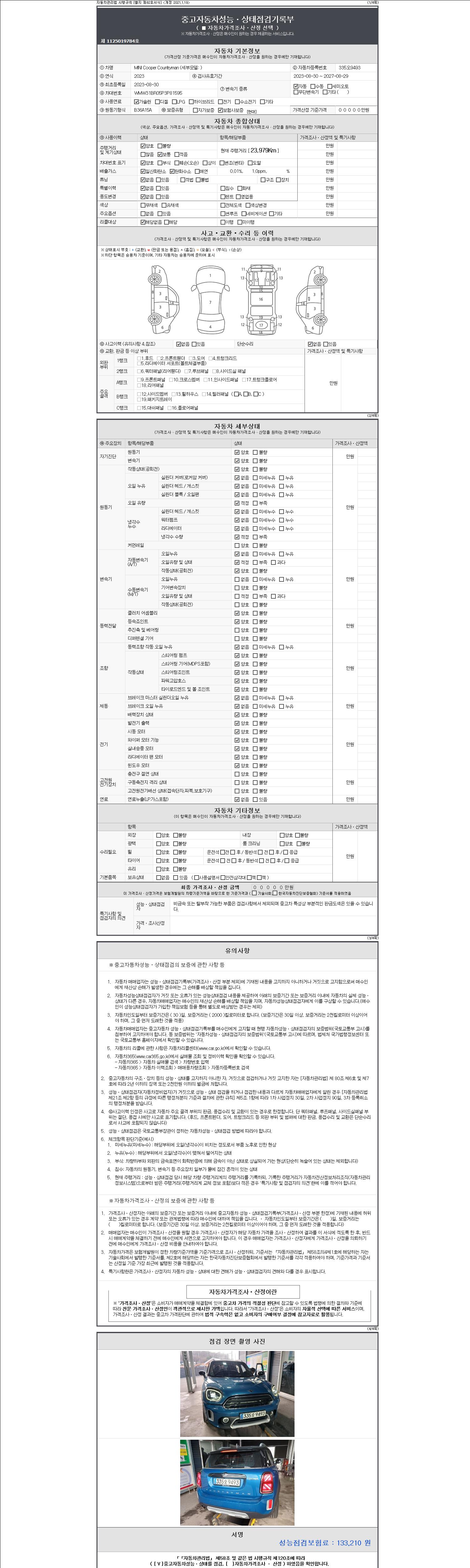 | 주행거리 | 23,979 km | 차량번호 | 335오9493 |
