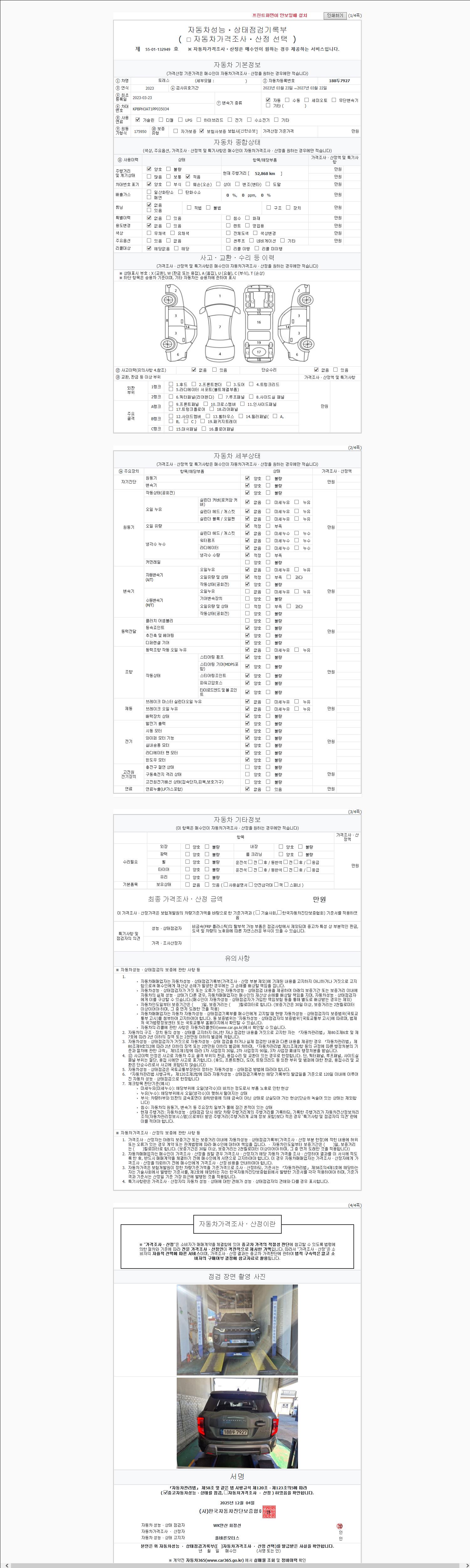 2. 차량 등록증이나 성능점검지 등을 상담자에게 요청및 확인하시고 사전에 미리 점검 하시기를 권유드립니다.