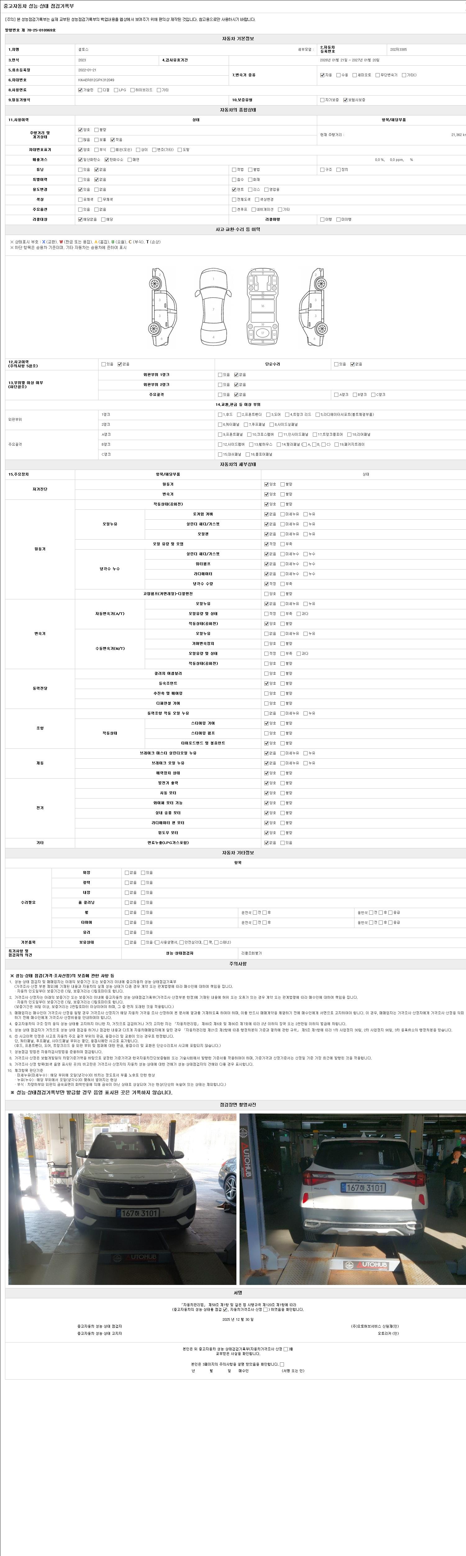 2. 차량 등록증이나 성능점검지 등을 상담자에게 요청및 확인하시고 사전에 미리 점검 하시기를 권유드립니다.