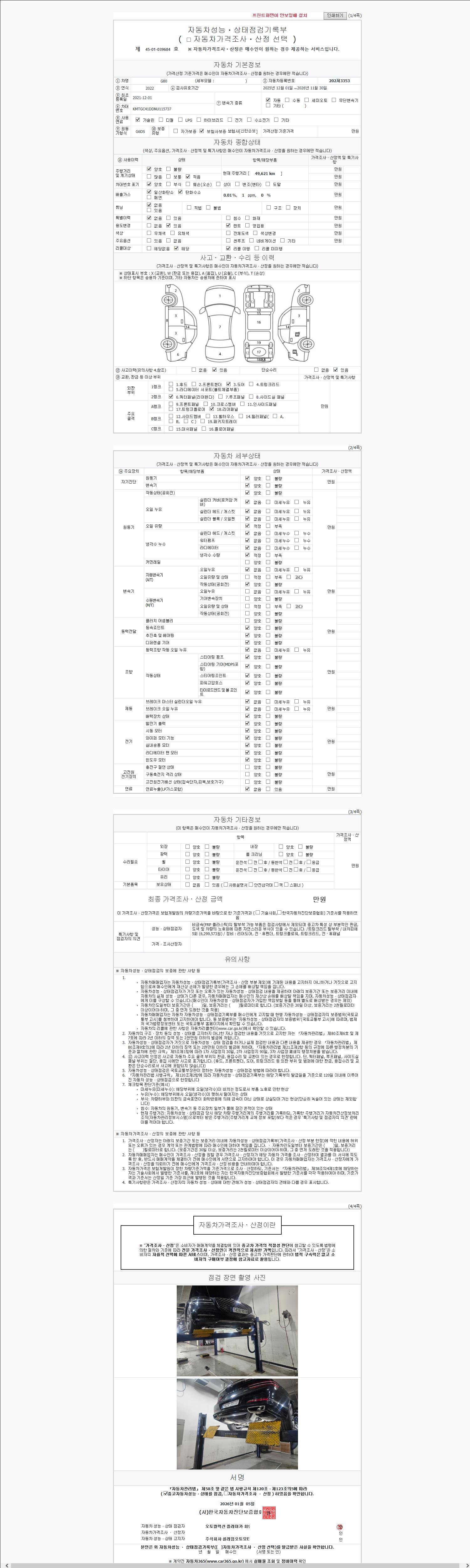 2. 차량 등록증이나 성능점검지 등을 상담자에게 요청및 확인하시고 사전에 미리 점검 하시기를 권유드립니다.