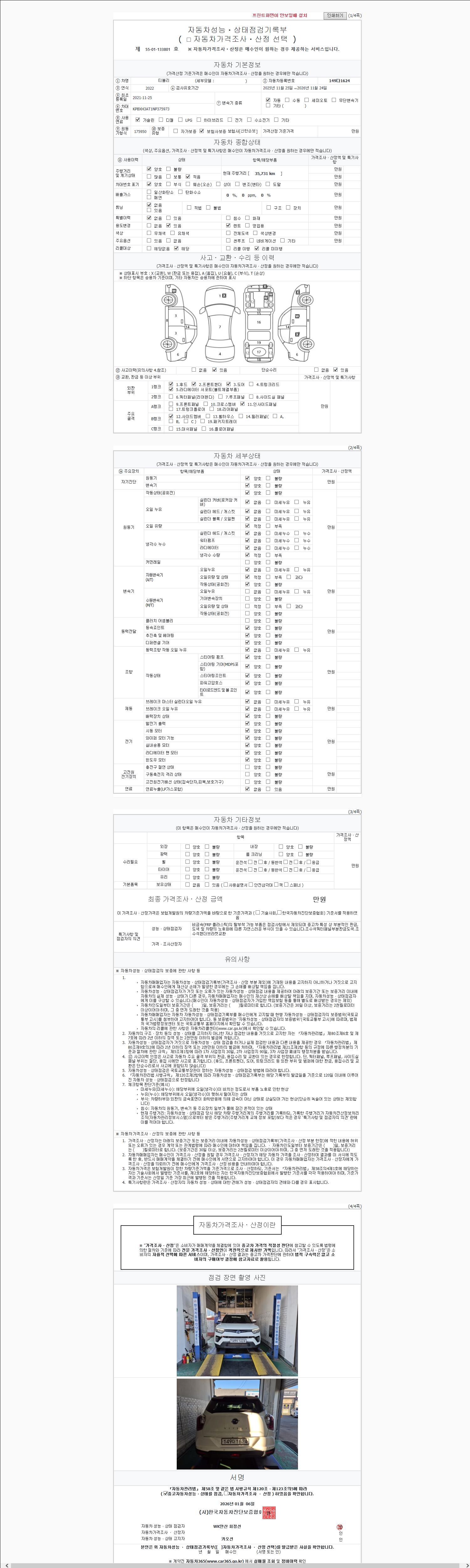 -중고자동차 매매업자를 통해 차량을 구입하실 경우 반드시 "중고자동차 성능, 상태점검 기록부"를 교뷰 받으셔야 하며, 매매업자는 반드시 의무 교부 하여야 압니다.