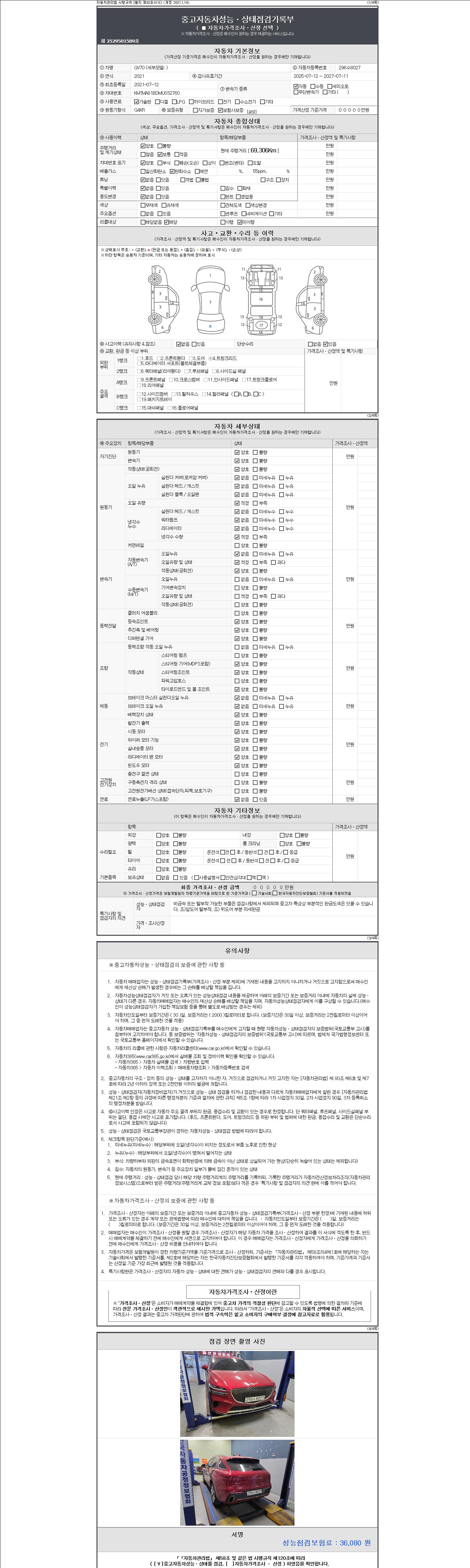 | 주행거리 | 69,306 km | 차량번호 | 296수8027 |