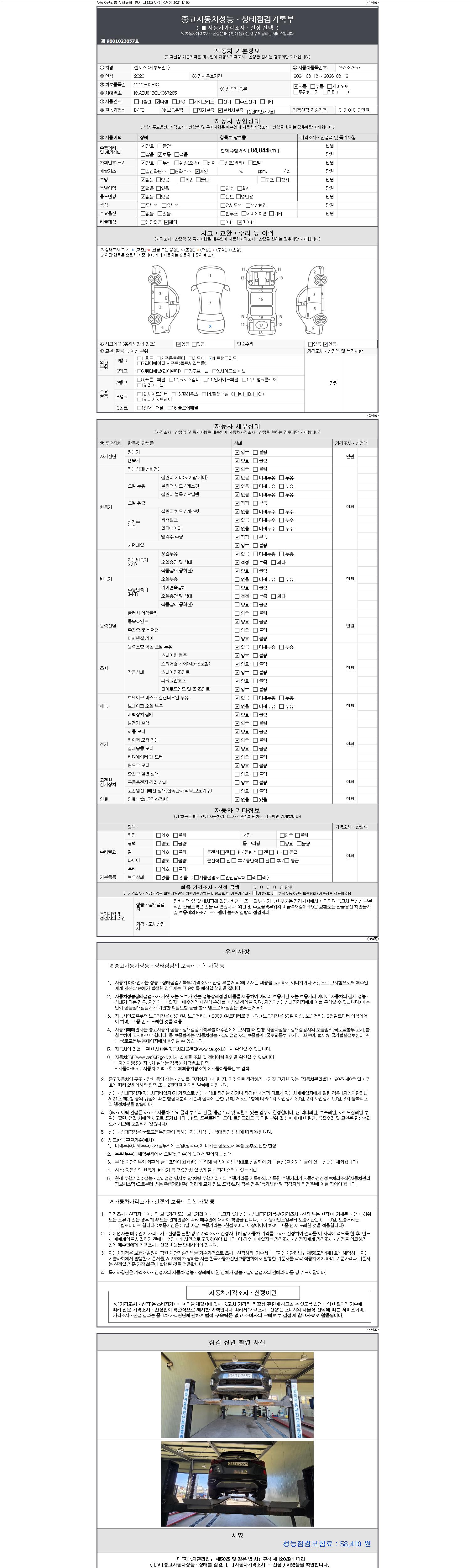 2. 차량 등록증이나 성능점검지 등을 상담자에게 요청및 확인하시고 사전에 미리 점검 하시기를 권유드립니다.