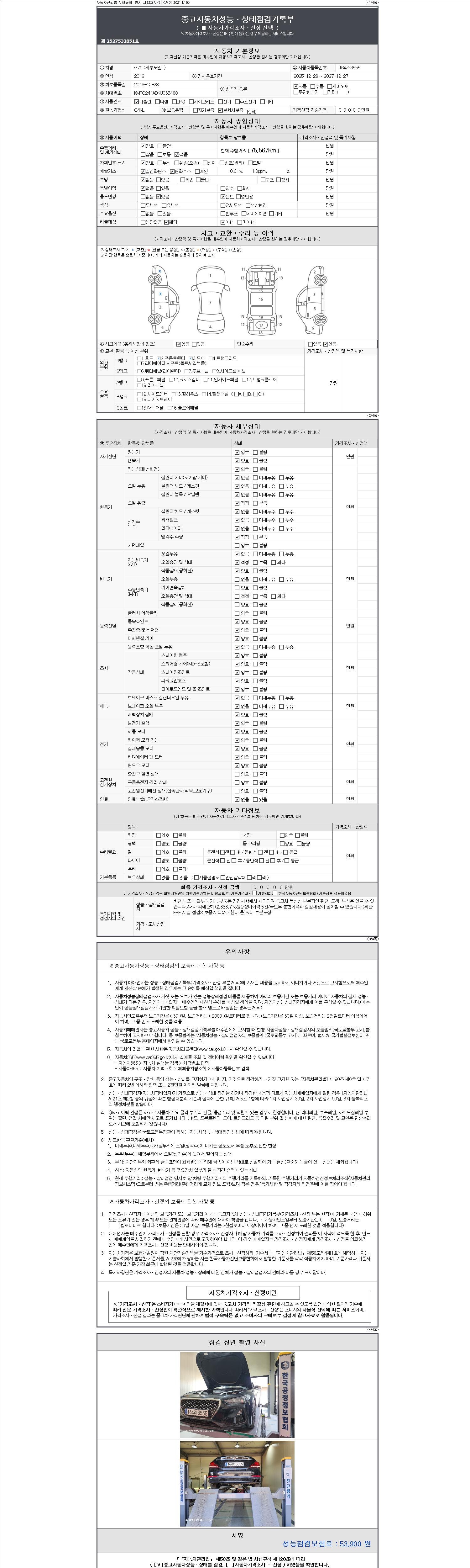 2. 차량 등록증이나 성능점검지 등을 상담자에게 요청및 확인하시고 사전에 미리 점검 하시기를 권유드립니다.