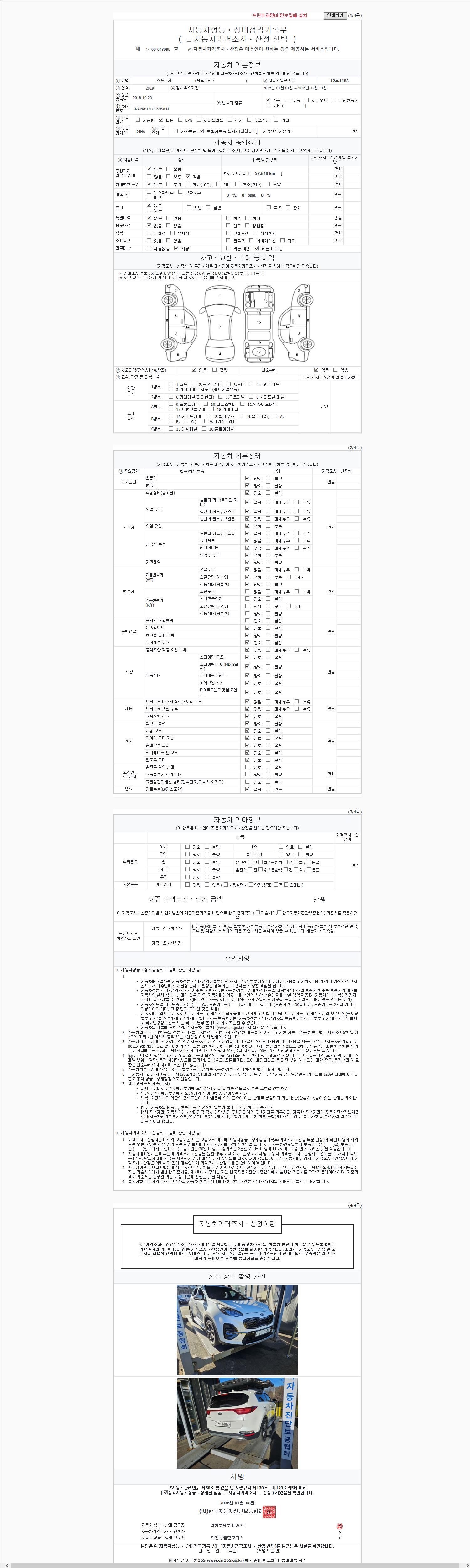 | 사고유무 | 성능기록부 참조 | 제시번호 | 제 2026003490 호 |
