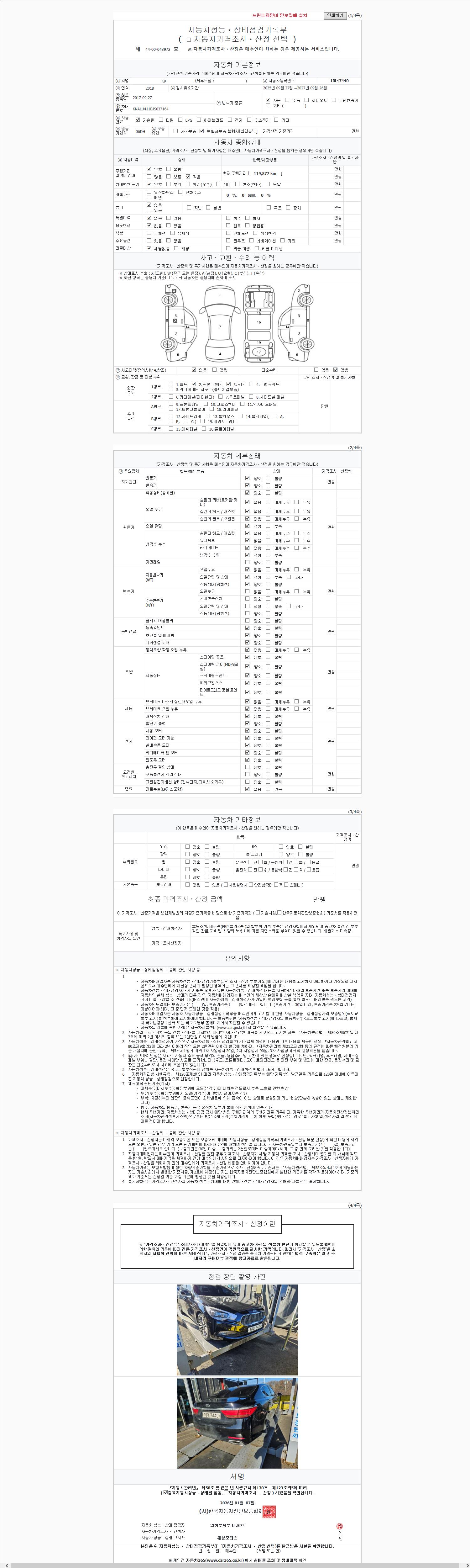 사고유무 성능기록부 참조 제시번호 제 2026001469 호