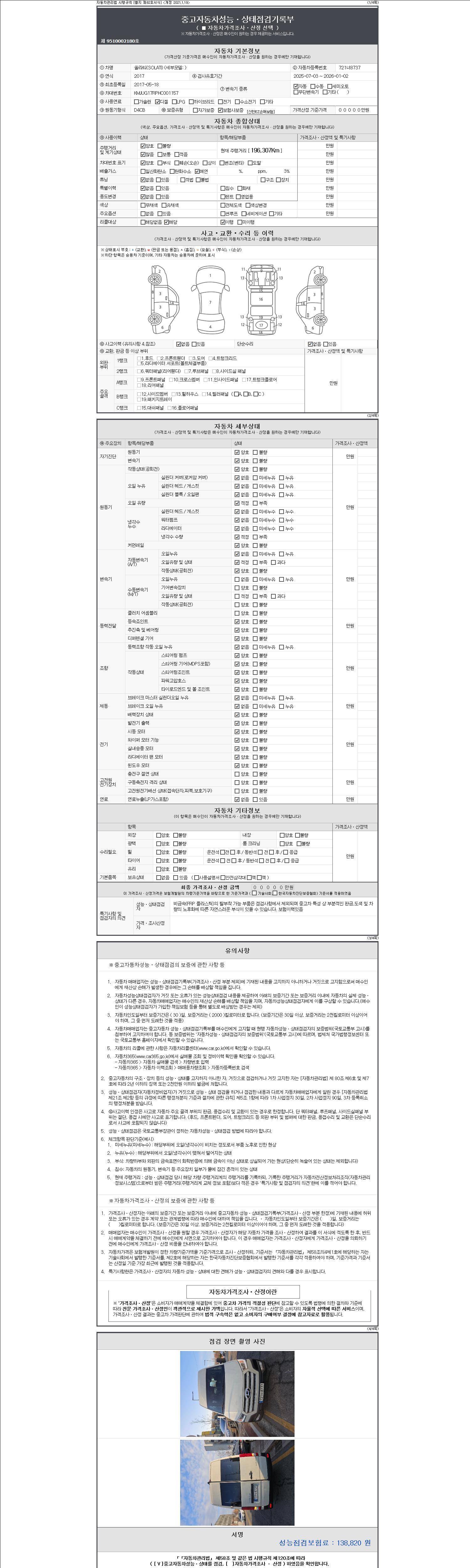 2. 차량 등록증이나 성능점검지 등을 상담자에게 요청및 확인하시고 사전에 미리 점검 하시기를 권유드립니다.