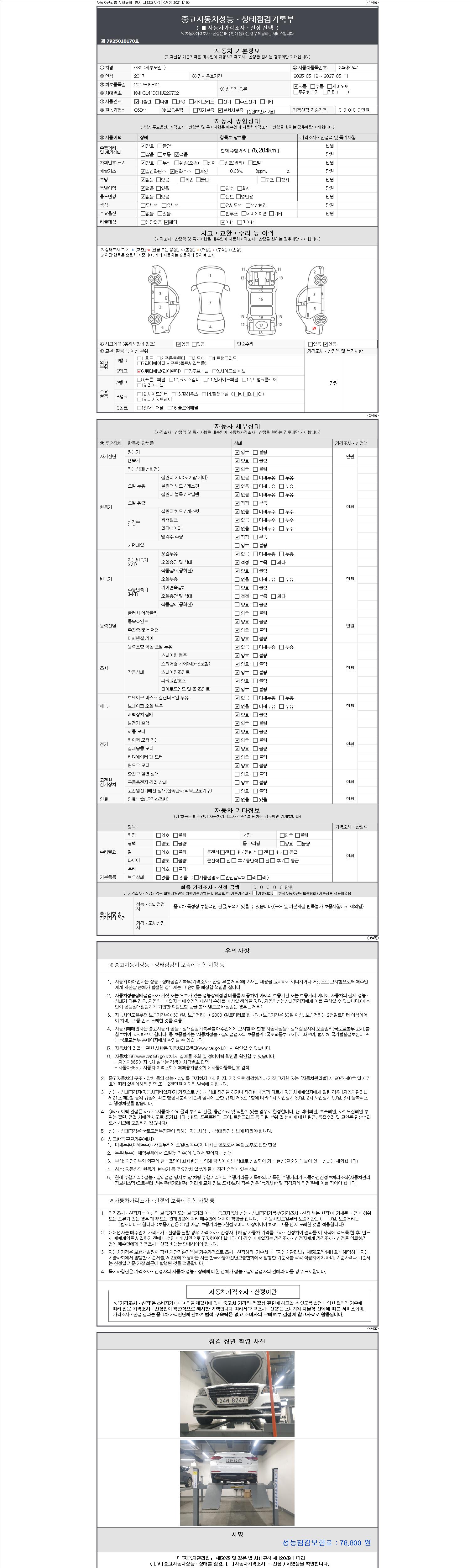 2. 차량 등록증이나 성능점검지 등을 상담자에게 요청및 확인하시고 사전에 미리 점검 하시기를 권유드립니다.