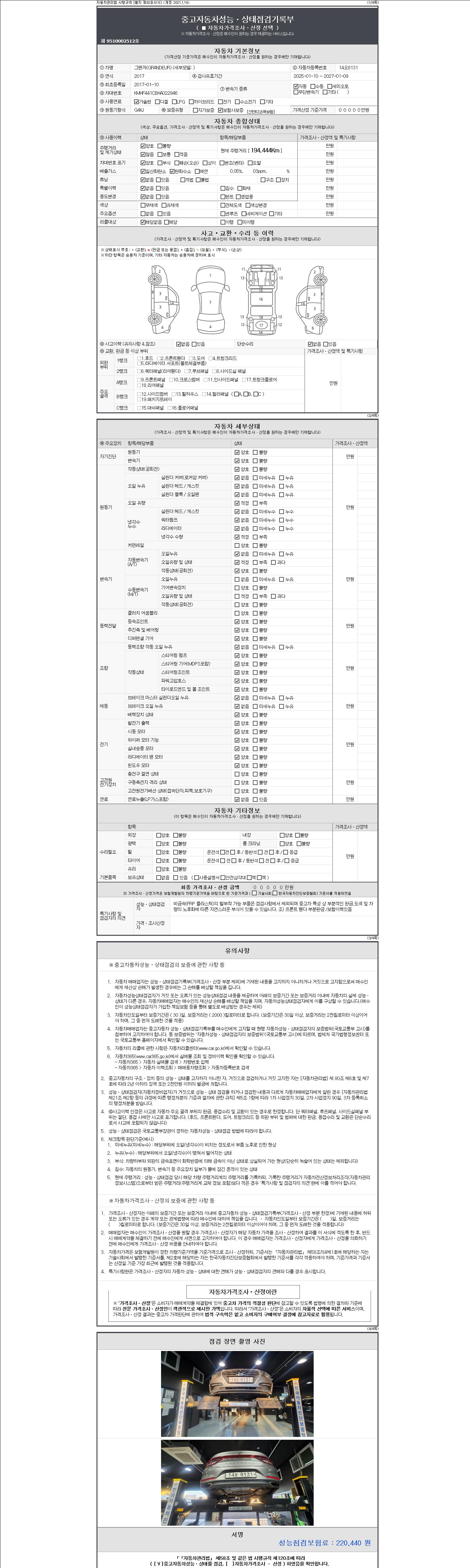 -중고자동차 매매업자를 통해 차량을 구입하실 경우 반드시 "중고자동차 성능, 상태점검 기록부"를 교뷰 받으셔야 하며, 매매업자는 반드시 의무 교부 하여야 압니다.