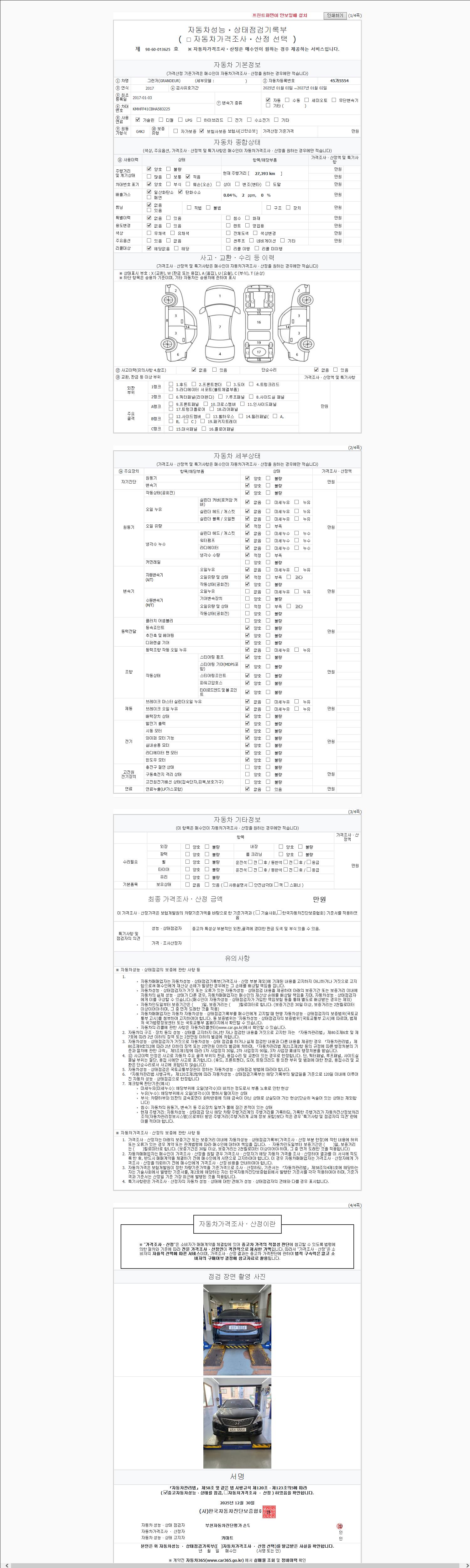 사고유무 성능기록부 참조 제시번호 제 2025240895 호