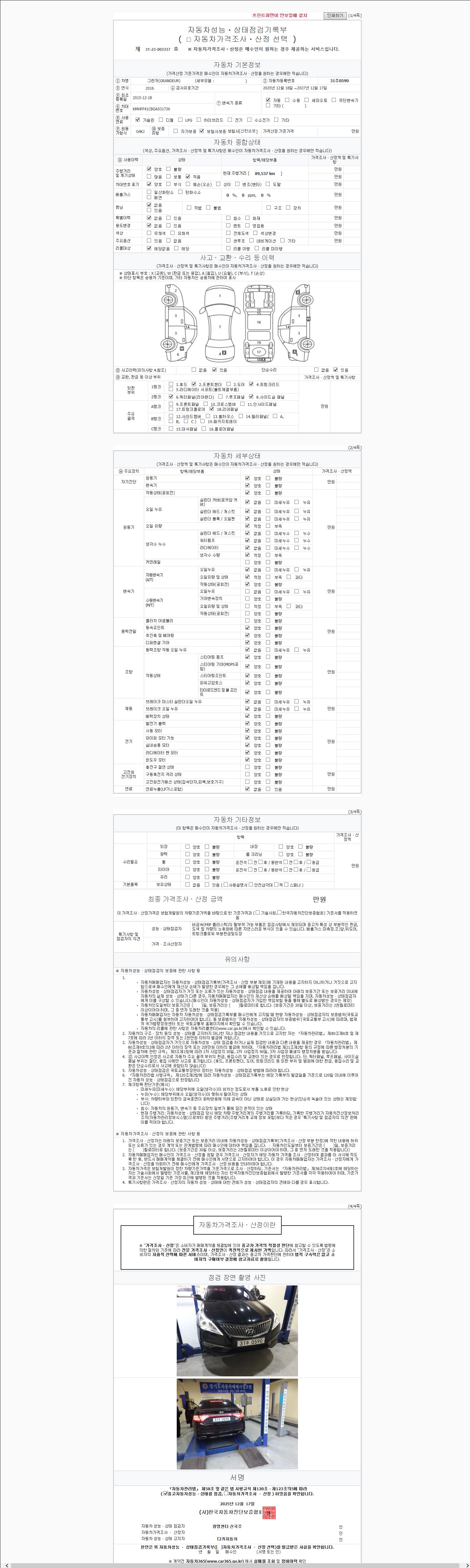 사고유무 성능기록부 참조 제시번호 제 2147483647 호