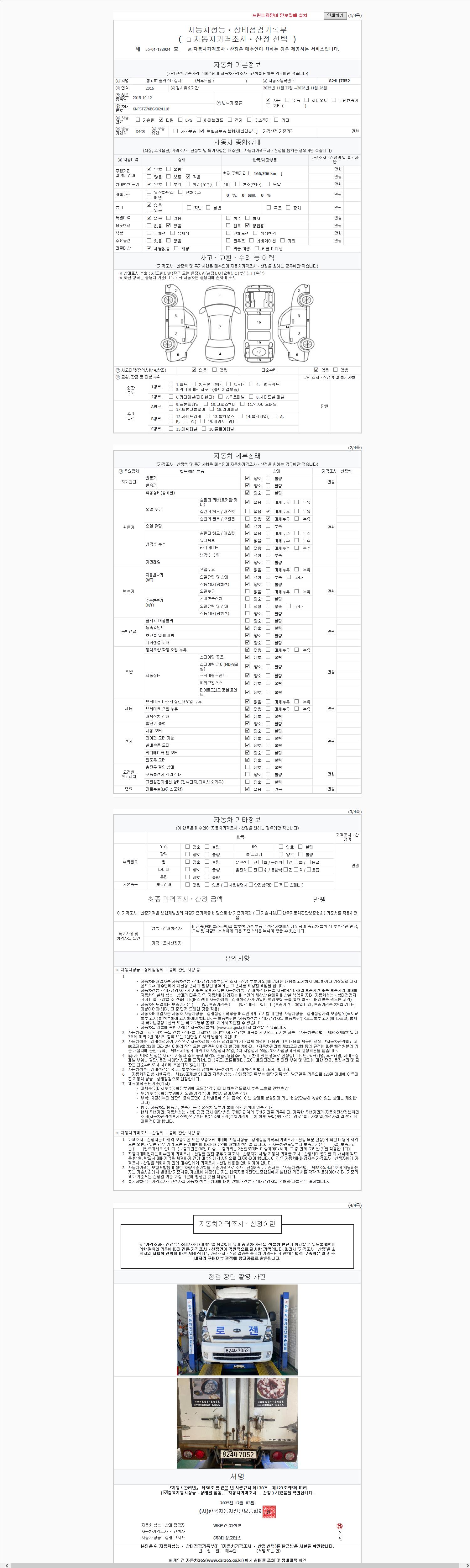| 주행거리 | 166,706 km | 차량번호 | 824나7052 |
