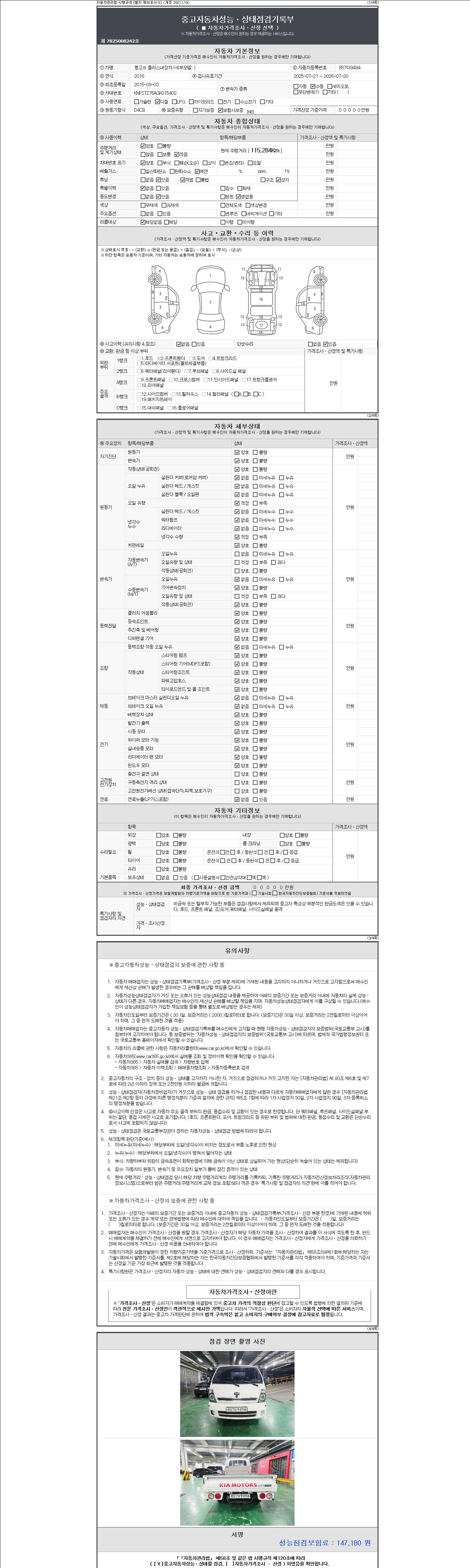 -중고자동차 매매업자를 통해 차량을 구입하실 경우 반드시 "중고자동차 성능, 상태점검 기록부"를 교뷰 받으셔야 하며, 매매업자는 반드시 의무 교부 하여야 압니다.