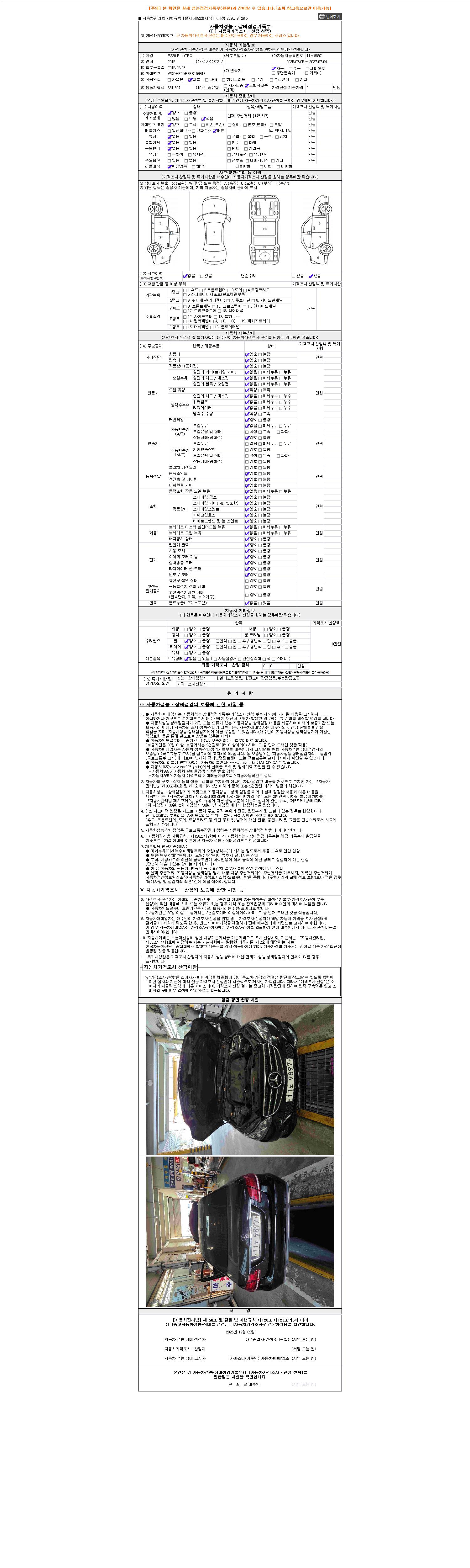 2. 차량 등록증이나 성능점검지 등을 상담자에게 요청및 확인하시고 사전에 미리 점검 하시기를 권유드립니다.