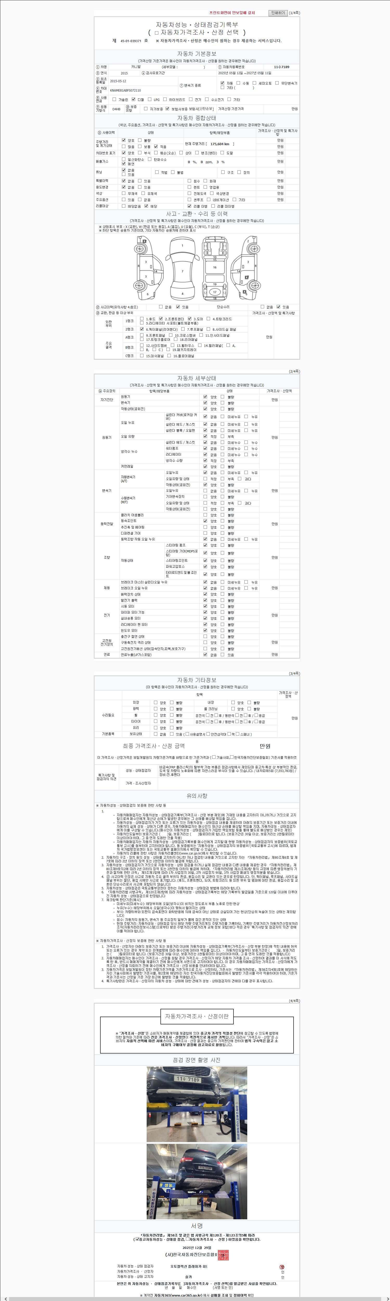 2. 차량 등록증이나 성능점검지 등을 상담자에게 요청및 확인하시고 사전에 미리 점검 하시기를 권유드립니다.