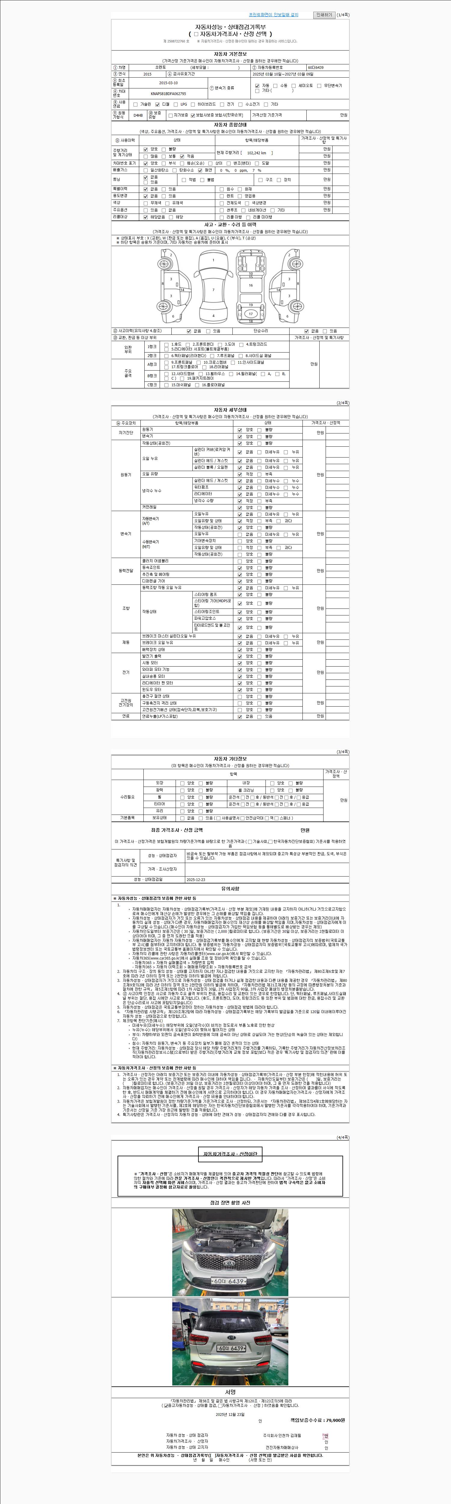 사고유무 성능기록부 참조 제시번호 제 2025071046 호