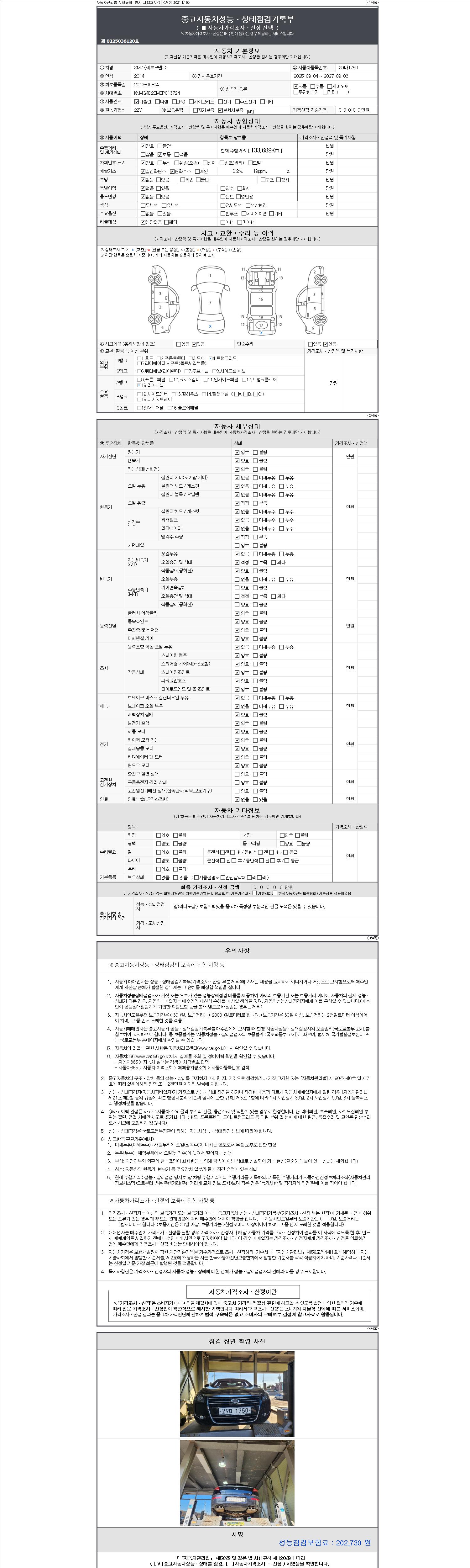 2. 차량 등록증이나 성능점검지 등을 상담자에게 요청및 확인하시고 사전에 미리 점검 하시기를 권유드립니다.