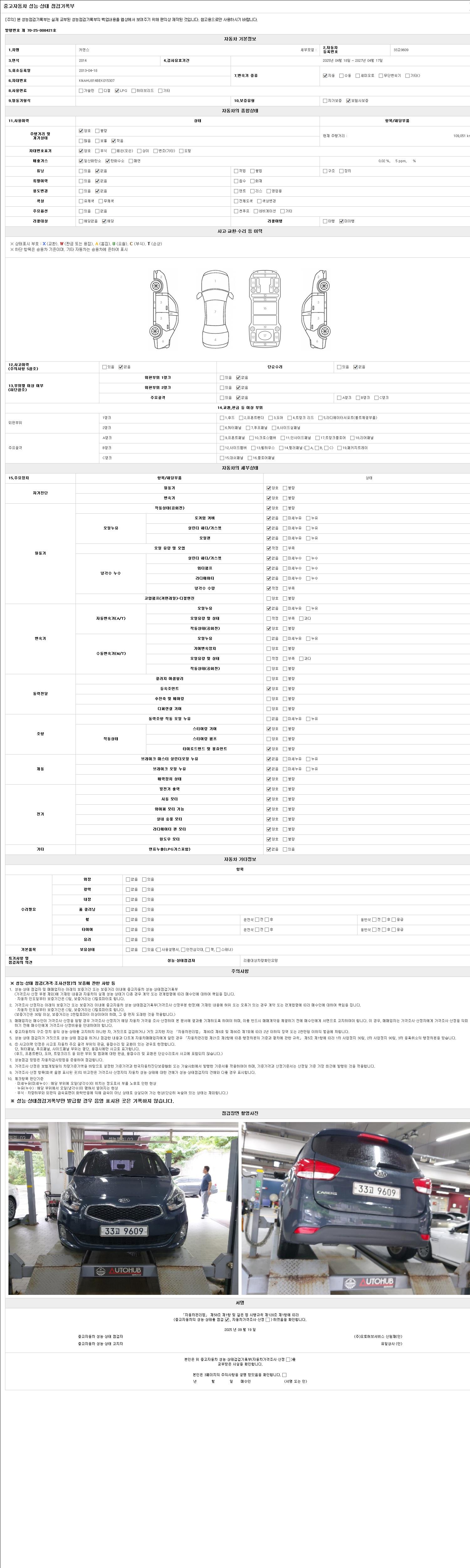 2. 차량 등록증이나 성능점검지 등을 상담자에게 요청및 확인하시고 사전에 미리 점검 하시기를 권유드립니다.