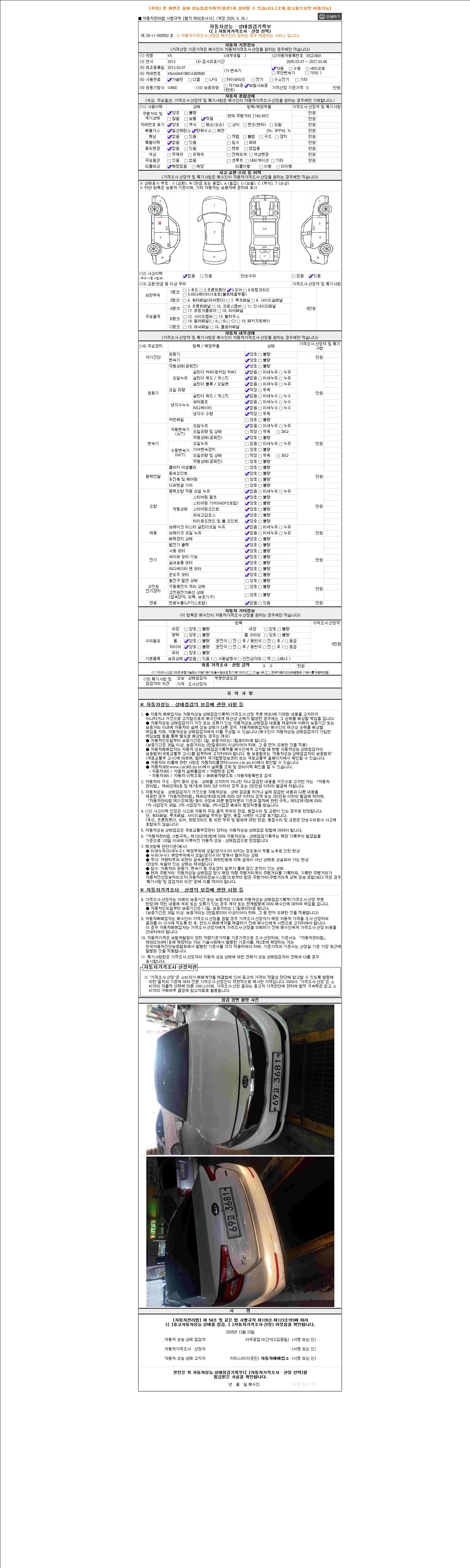 2. 차량 등록증이나 성능점검지 등을 상담자에게 요청및 확인하시고 사전에 미리 점검 하시기를 권유드립니다.