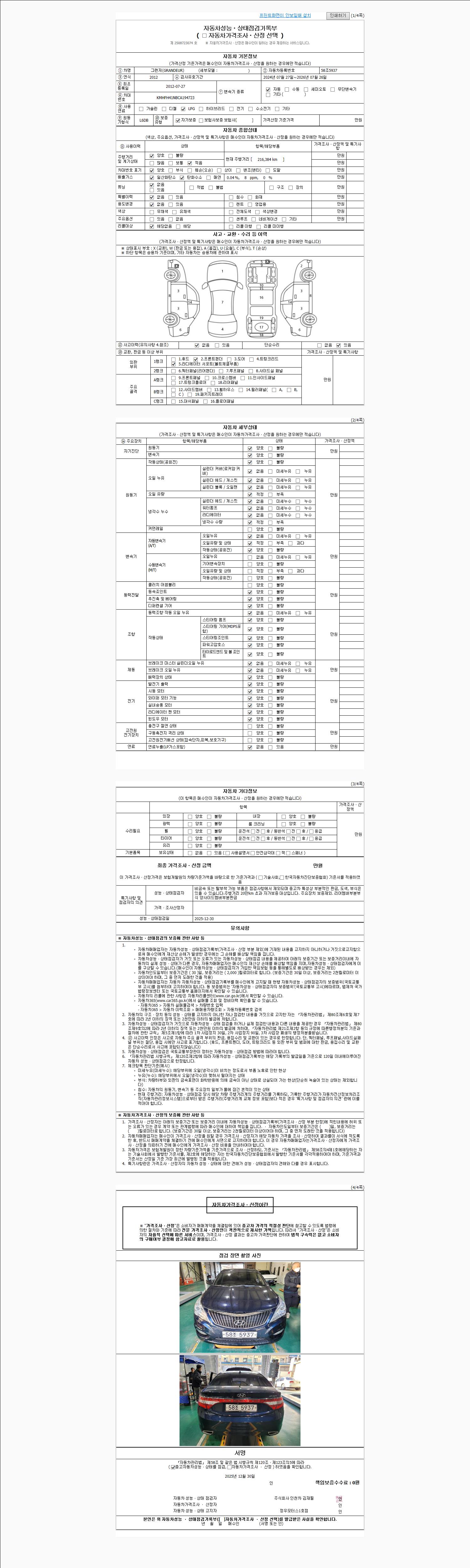| 사고유무 | 성능기록부 참조 | 제시번호 | 제 2025071937 호 |