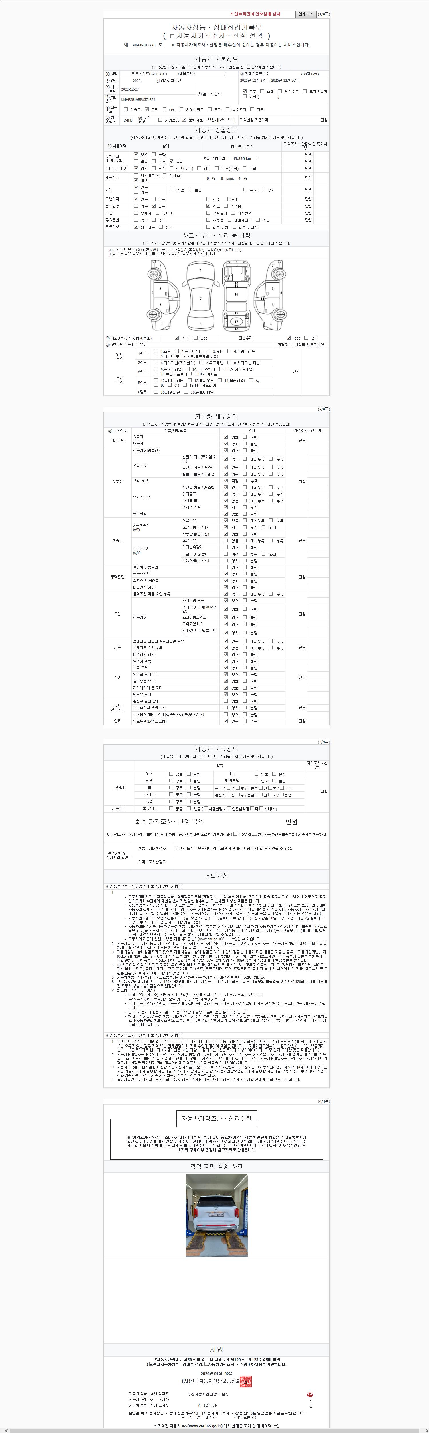 2. 차량 등록증이나 성능점검지 등을 상담자에게 요청및 확인하시고 사전에 미리 점검 하시기를 권유드립니다.