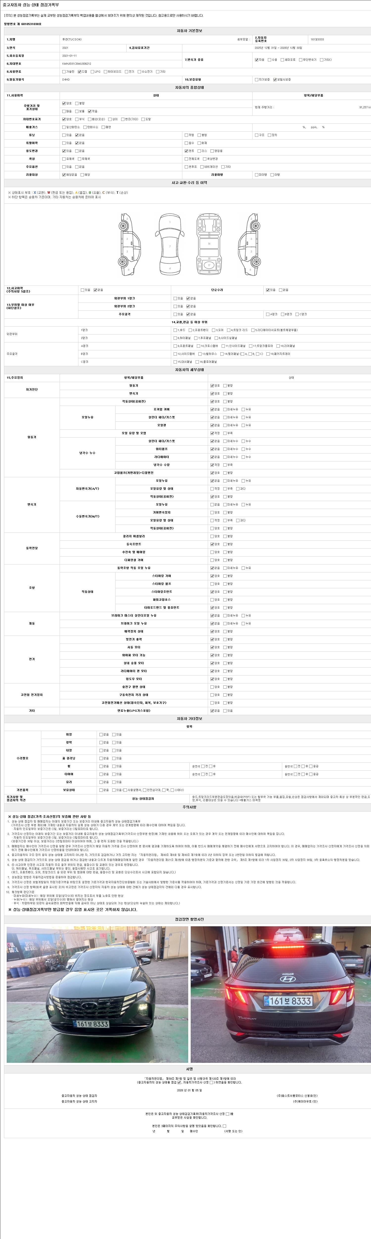 | 주행거리 | 91,257 km | 차량번호 | 161보8333 |
