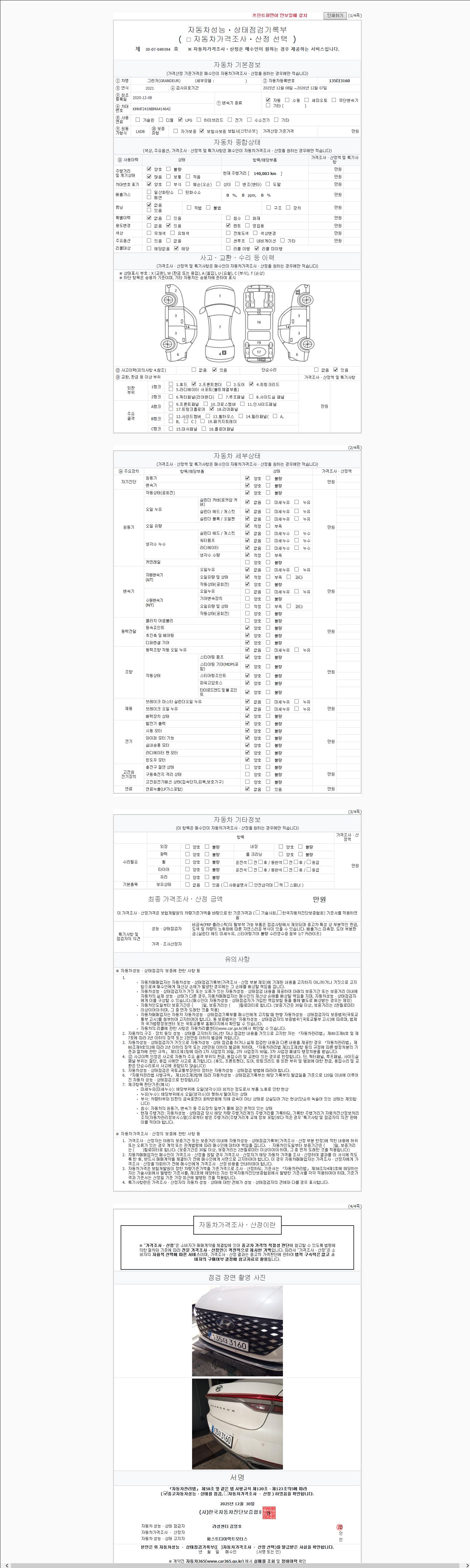 -중고자동차 매매업자를 통해 차량을 구입하실 경우 반드시 "중고자동차 성능, 상태점검 기록부"를 교뷰 받으셔야 하며, 매매업자는 반드시 의무 교부 하여야 압니다.