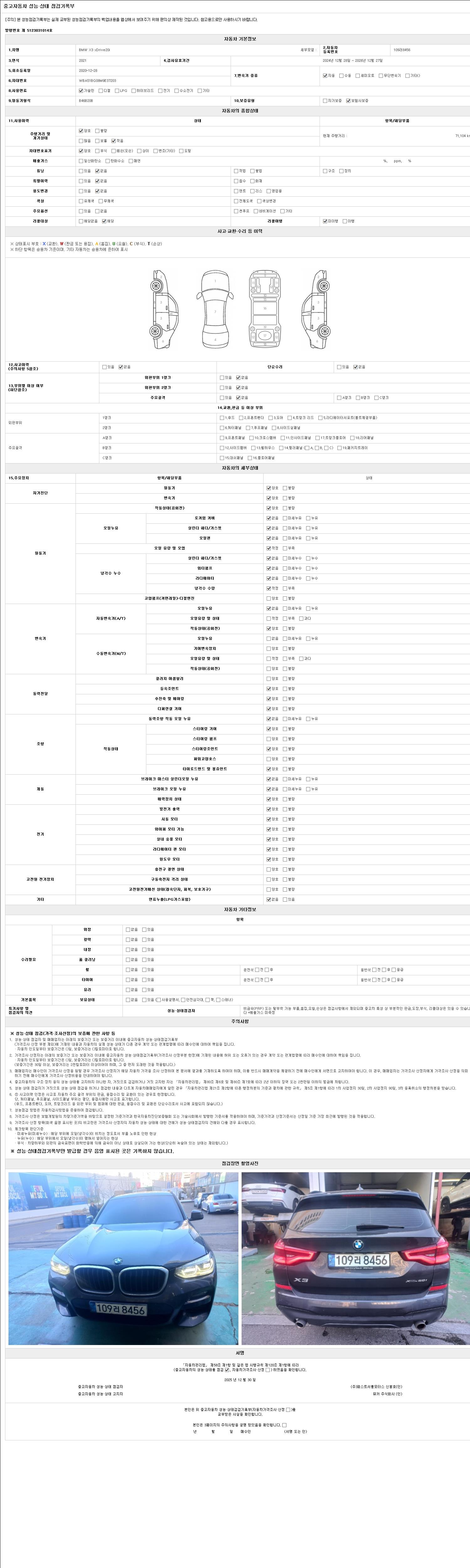 2. 차량 등록증이나 성능점검지 등을 상담자에게 요청및 확인하시고 사전에 미리 점검 하시기를 권유드립니다.
